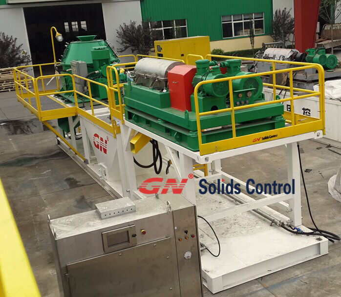 第三步:通過鉆屑干燥機處理后排入泥漿罐的液相部分,它其中還包含了很多2-5微米的細小固體顆粒,通過立式渣漿泵將液相部分提供給GNLW363B-VFD臥螺離心機進行處理。